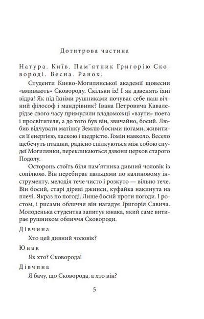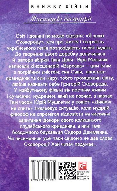 Світ і донині не може сказати: «Я знаю Сковороду», хоч про життя і творчість українського генія розповідають тисячі видань. До творення цього доробку долучилися й автори збірки. Іван Драч і Віра Мельник написали кіносценарій «Варсава» — цим ім'ям з потрійним змістом: син Сави, апостол-праведник та син миру, тобто громадянин світу, любив називати себе Григорій Сковорода. У майбутньому фільмі він постане живим і сучасним, мудрецем, який не повчає, а навчає. Тим часом Юрій Мушкетик у повісті «Диявол не спить» змальовує ситуацію, коли мудрий філософ не спромігся відповісти на численні запитання-докори свого колишнього спудейського кривдника, а нині теж бездомного блукальця Сидора Даниленка. Чи письменник усе-таки свідомо не дав слова Сковороді? Хай читач подумає…