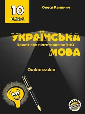 Зошит для підготовки до ЗНО на уроках української мови в 10 класі Орфографія. Цей зошит частина серії зошитів із підготовки до ЗНО з української мови та літератури на уроках у 10-11 класах, яка складається з шести частин: «Лексикологія. Фразеологія, Будова слова. Словотвір. Фонетика. Графіка. Орфоепія», «Орфографія», «Морфологія», «Просте неускладнене речення», «Просте ускладнене речення», «Складне речення».