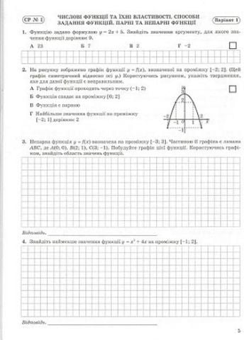 Зошит для контролю навчальних досягнень Алгебра і початки аналізу 10 клас Рівень стандарту. Матеріали посібника відповідають чинній програмі з математики рівень стандарту для 10 класу закладів загальної середньої освіти.