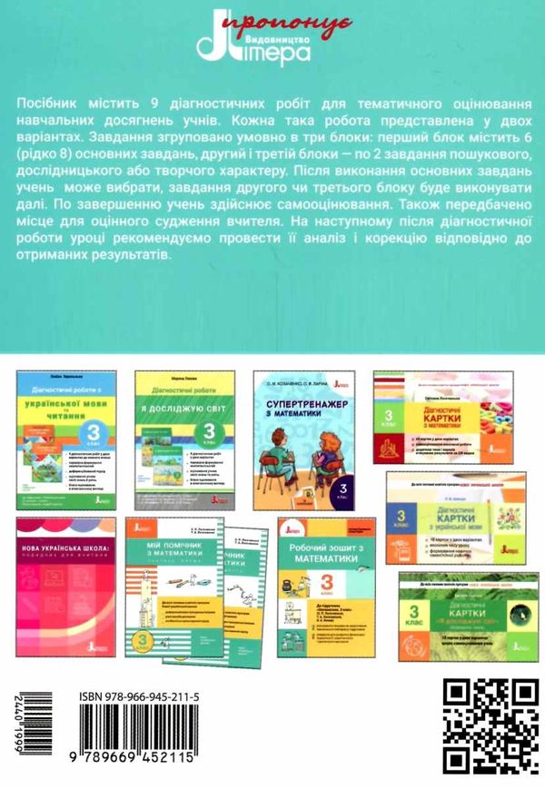 Діагностичні роботи з математики 3 клас НУШ Авт: Логачевська С.П. Вид-во: Літера 41383
