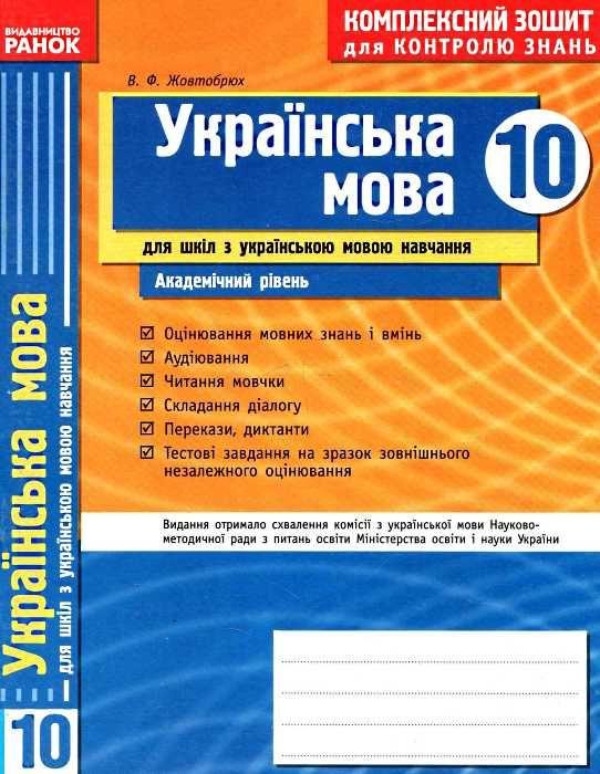 Українська мова 10 клас Академічний рівень Комплексний зошит для контролю знань Українська мова навчання Авт: Жовтобрюх В. Вид-во: Ранок