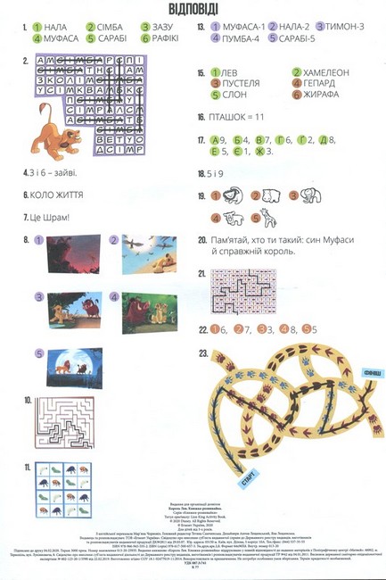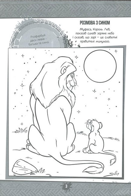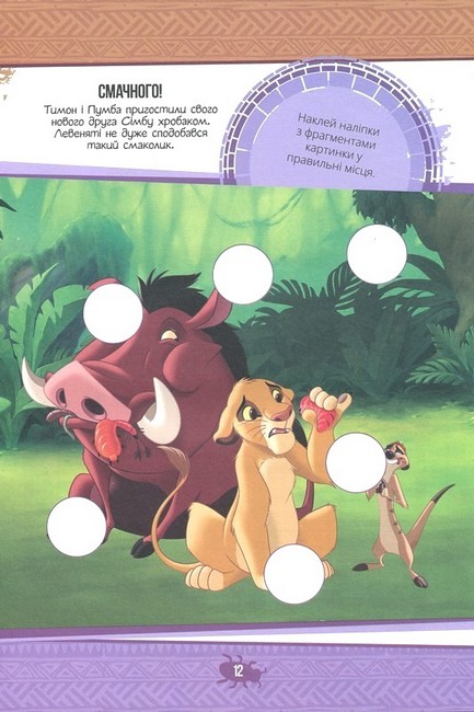 Приєднуйся до Сімби, малого допитливого левеняти, та стань свідком його неймовірних пригод. Олівці та фломастери допоможуть тобі розфарбувати його світ у найяскравіші кольори, а барвисті наліпки доповнять творчий процес.