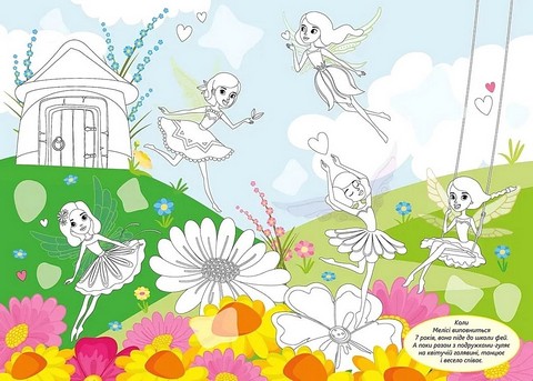Книжка познайомить читача з феєю Мелісою та її подружками. Серед них і маленькі крилаті феї, і феї моря — русалочки. Що вони подарують Мелісі на день народження? Чого навчають у школі фей?.. Запропонуйте дитині вигадати власні історії про феєчок, доповнити сторінки наліпками, розмалювати ілюстрації, що так завбачливо не домалював художник, закрити частину малюнка й пограти в «Що зникло?». Такі ігри не тільки захопливі, а й добре тренують дрібну моторику, розвивають фантазію, увагу та пам'ять дитини.