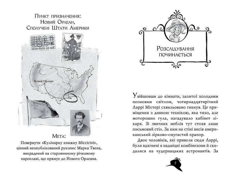 Книга 21. Крадіжка на Міссісіпі.Суперзлочин на супершоу! На старовинному пароплаві, що йде вниз по Міссісіпі, знімають популярну кулінарну телепрограму «Найкращий шеф-кухар». У фіналі конкурсу учасники мають приготувати десерт за рецептом з неопублікованої книжки Марка Твена «Кулінарна книжка Міссісіпі». Проте — жах! — цінний рукопис украв невідомий зловмисник. Продюсер шоу звертається по допомогу до відомої детективної агенції «Ай-Інтернешнл»… І ось команда детективів — Агата, Ларрі, містер Кент і кіт Ватсон — поспішає на борт пароплава. Вони мусять за день розгадати таємницю зниклого рукопису, а крім того, ще й скуштувати вишукані страви, приготовані найкращими кухарями планети!