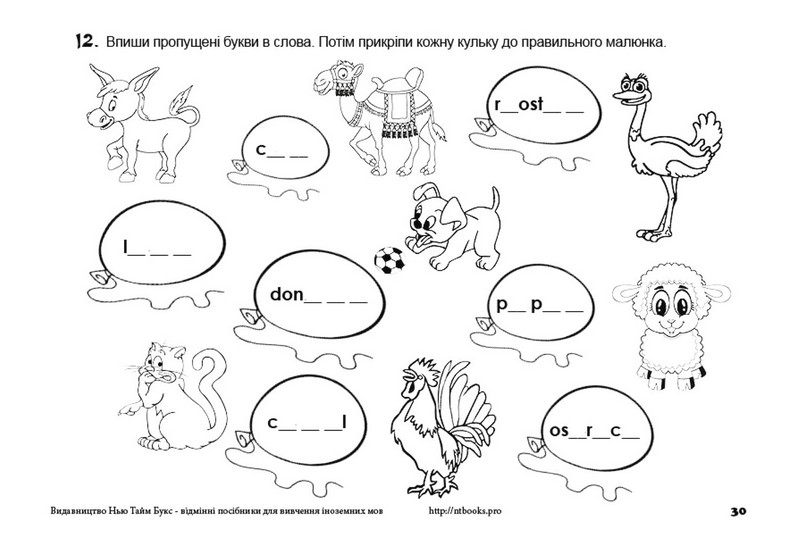 Але просто розфарбовувати мало. Щоб розмальовки принесли максимум користі, і щоб дитина дійсно запам'ятала назви свійських (домашніх) тварин англійською мовою, вона обов'язково має виконати лексичні завдання з цими словами.
