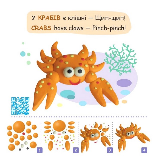 Коли дитина бачить і чує, в неї розвивається пам'ять. Обговорення побаченого і почутого сприяє розумінню. Якщо ж дитина бачить, чує, обговорює і робить, формуються навички. Ліплення — це той тренажер, що розвиває сенсорні і моторні вміння та психічні процеси малюка. Покрокова інструкція, подана у виданні, допоможе дитині вміло зліпити різних істот. Завдяки простим фразам малюк зможе озвучити кожен виріб та придумати до нього сюжетну гру. Звуконаслідування спонукатимуть до мовлення дітлахів-мовчунів. Якщо ж у вас росте юний білінгв, то ця книжка чудово підійде для вивчення перших англійських слів.