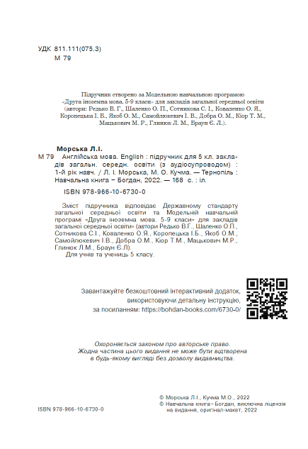 Підручник Англійська мова 1-й рік навчання 5 клас НУШ Морська Л. Богдан з аудіосупроводом Нова українська школа.