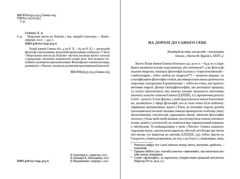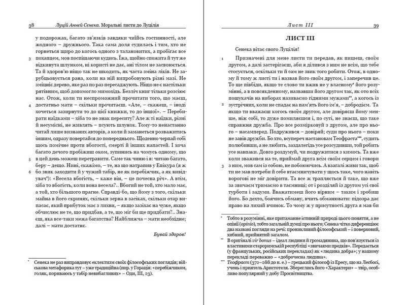 Луцій Анней Сенека (бл. 4 до Р. X. — 65 по Р. X.) — римський філософ і письменник, видатний представник стоїцизму. У його "Моральних листах до Луцилія" звучать заклики жити у злагоді з природою, несхитно переносити удари долі, йти шляхом постійного духовного вдосконалення. Філософсько-етичні погляди, розвинуті у "Листах", належать до витоків християнської ідеології.