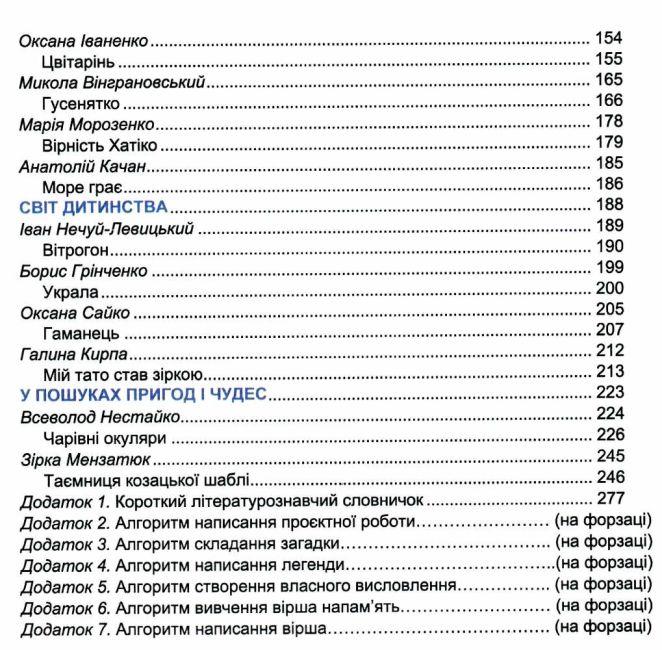 Підручник містить теоретичний матеріал, тексти творів і завдання різного рівня складності з української літератури. Підручник укладено відповідно до модельної програми з української літератури для 5 класів закладів загальної середньої освіти (автори Т. О. Яценко, Т. Б. Качак, В. В. Кизилова, В. І. Пахаренко, С. О. Дячок, Л. М. Овдійчук, О. А. Слижук, В. М. Макаренко, І. А. Тригуб). Для п’ятикласників і п’ятикласниць закладів загальної середньої освіти, педагогів, студентства педагогічних навчальних закладів і всіх, хто цікавиться українською літературою
