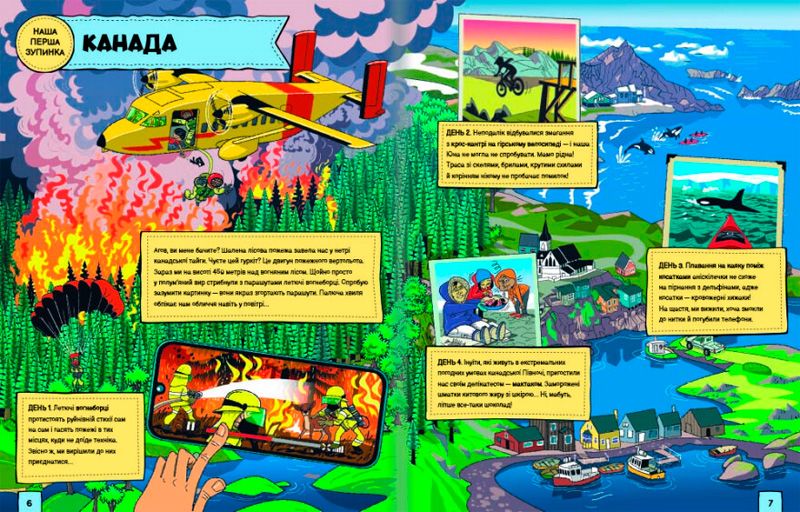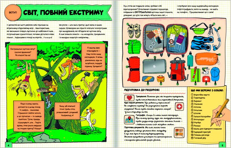 Це кольорове видання для відчайдушних юних читачів, які люблять і шукають пригоди. З чотирма героями цієї книжки можна потрапити в найекстремальнішу мандрівку світом. Вони побувають у різних країнах та на різних континентах, де мешкають отруйні істоти, ростуть неприступні рослини, знаходяться таємничі печери, вулкани, де бувають торнадо, де екстремальні температури,бездонні урвища та ще багато інших небезпек. В такі місця точно не потрапляють туристи.
