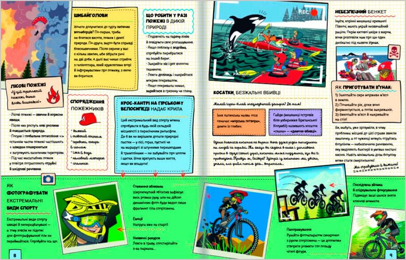 Окрім історій про пригоди, герої книжки розказують, що повинно бути у наплічнику, коли вирушаєш в екстремальну подорож, як діяти в тій чи іншій небезпеці, як найкраще фотографувати та знімати власні пригоди на відео.