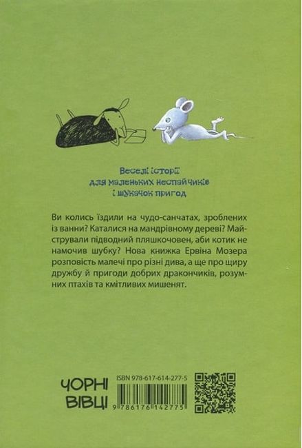 Нарешті ще одне українське видання коротких історій Ервіна Мозера. Для тих, хто вже зачитав «Фантастичні історії на добраніч» та «Чудові історії на добраніч» цього разу пропонуємо трохи повеселитися з «Веселими історіями на добраніч». У цьому виданні зібрано тексти і малюнки Ервіна Мозера із його збірок від 1986 до 2002 року: «Ворон у снігу» (© 1986), «Дивний гість» (© 1988), «Султан Мудші» (© 1989), «Соня» (© 1991), «Картатий пугач» (© 1992), «Знайда» (© 1994), «Ведмедик Маріо» (© 1996), «Таємнича сова» (© 1997), «Мишачий ягуар» (© 1999), «Приязний дракон» (© 2001), «Клоун Плім» (© 2002).