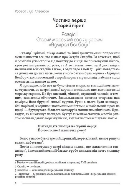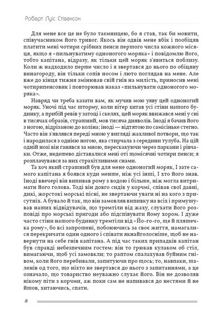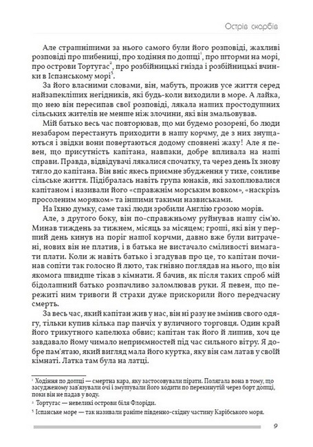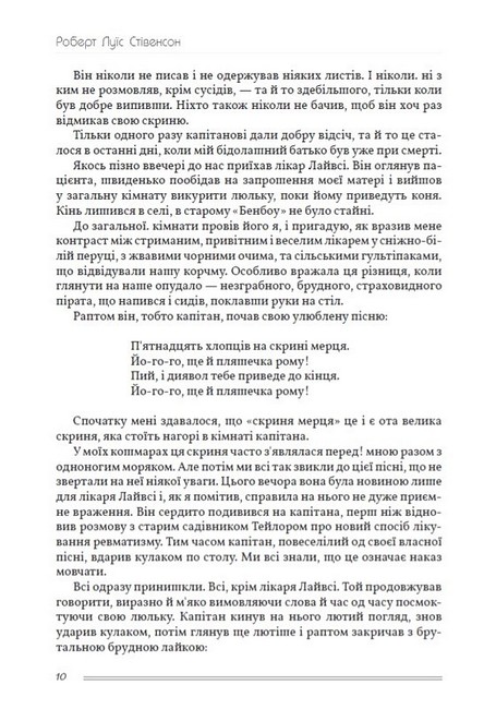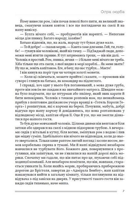 людей — сквайра Трелоні, доктора Лівсі, капітана Смоллета й самого Джима, яким доведеться виявити неабияку мужність, винахідливість і людяність, щоб не стати жертвами підступних і жадібних піратів.