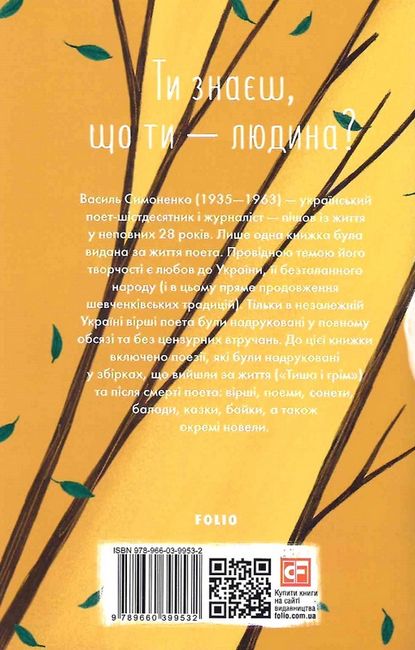 Василь Симоненко (1935—1963) — український поет-шістдесятник і журналіст — пішов із життя у неповних 28 років. Лише одна книжка була видана за життя поета. Але вже тоді набули великої популярності поезії Симоненка, що поклали початок українському рухові опору 1960—1970-х років. Провідною темою його творчості є любов до України, її безталанного народу (i в цьому пряме продовження шевченківських традицій). Тільки в незалежній Україні вiршi поета були надруковані у повному обсязі та без цензурних втручань. У 1995 році Василю Симоненку посмертно присуджено Державну премію України імені Т. Шевченка.
