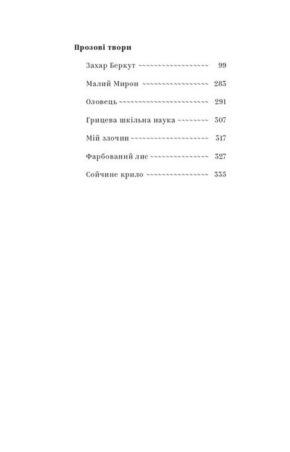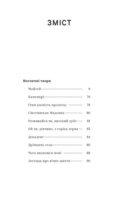 Поетичні твори – поема «Мойсей», філософська поезія «Легенда про вічне життя», лірична поема-алегорія «Каменярі», вірші «Дрімають села», «Розвивайся ти, високий дубе…», «Гімн (замість пролога)», «Ой ти, дівчино, з горіха зерня», «Чого являєшся мені...», «Декадент», сонет «Сікстинська мадонна». Прозові твори – історична повість «Захар Беркут», літературна казка «Фарбований лис», оповідання «Малий Мирон», «Мій злочин», «Грицева шкільна наука», «Олівець», психологічна новела «Сойчине крило».
