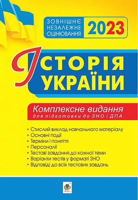 Посібник являє собою комплексне видання призначене для повноцінної підготовки до ЗНО з історії України. Він містить всі теми КУРСУ. У кожній з них подано короткий перелік основних подій, поняття і терміни, інформацію про персоналії, стислий виклад навчального матеріалу, тестові завдання. Наприкінці посібника містяться тренувальні тести у форматі ЗНО. Для учнів 11 класів, абітурієнтів, вчителів.