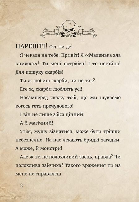 Цього разу ти разом із «Маленькою злою книжкою» подасися в дуже цікаву і трохи лячну мандрівку. Ви навідаєтеся до Царства Кошмарів! Прогуляєтеся кладовищем, продиратиметеся хащами темного лісу, поспілкуєтеся з оракулом, мешканцями Пекла й Будинку Примар… Та не бійся аж так! Тебе супроводжуватимуть приязна й добродушна демониця Моні та її хатній улюбленець Ґрампі (яким батьки Моні ледь не посмакували на обід). Обов’язково захопи в мандрівку компас і мапу, які знайдеш в кінці книжки. Хай тобі щастить у пошуках чарівного порталу, що відкриє купу пригод!