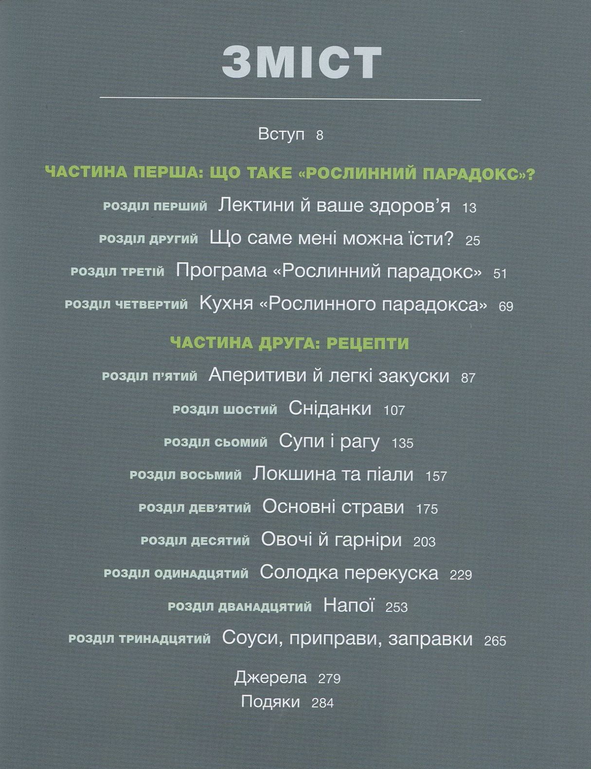 Автор крок за кроком розкриває секрет здорового харчування і ділиться найулюбленішими і корисними рецептами. Серед розмаїття найпопулярніших страв, що схвалені програмою «Рослинний парадокс», кожен знайде свої найулюбленіші: рецепти пончиків і млинців, піци й страв тайської кухні, фрикадельок і спагеті, тістечок і морозива тощо. До списку рецептів увійшли неймовірні страви від кухарів - володарів кулінарних премій.
