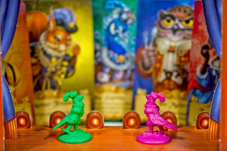Настольная игра Хистрио. Пьеса из леса длится пару раундов – театральных сезонов, на протяжении которых участники тайно отправляют своих подчиненных (актёров) в разные города одного маленького королевства, чтоб там раздобыть себе козыри в рукава: профессиональных актёров, гибких акробатов или спонсоров, готовых помочь звонкой монетой. Не стоит забывать, что другие игроки тоже могут отправить свою труппу в тот же город, что и вы, а потому за преимущества придется побороться. А вот если в городе вы окажетесь единственными претендентами – первенство и все бонусы достанутся вам без лишних усилий.
