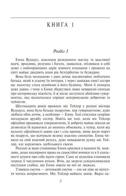 Емма Вудхаус, героїня однойменного роману, з неприпустимим марнославством і самовпевненістю вважала, що вміє читати в чужих серцях і здатна розпоряджатися чужими долями, навіть не замислюючись, що це може завдати комусь болю, до того ж стати загрозою її власному щастю — втратою відданого друга, який щиро кохає її.