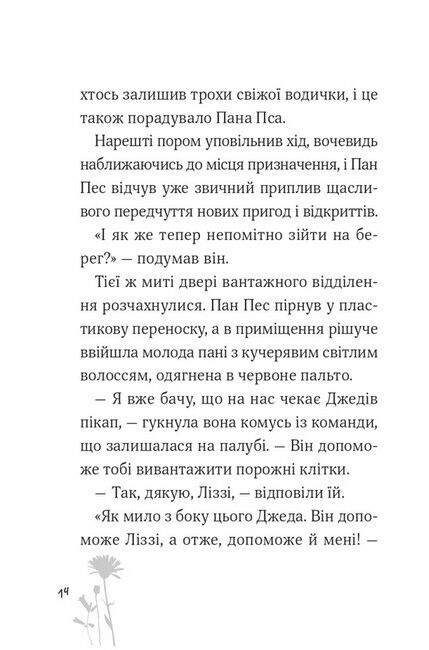 Добре, що жага до пригод і полювання на приємні спогади завели Пана Пса саме на острів Еван. Тут він знаходить нового друга, рятує його від нюхачів-шукачів (хоч це й обертається прикрою халепою) і намагається зясувати, чому ж насправді на острові виловлюють їжаків. Тепер у добрих лапах Пана Пса захист малого Колючки й допомога йому з налагодженням нового життя.