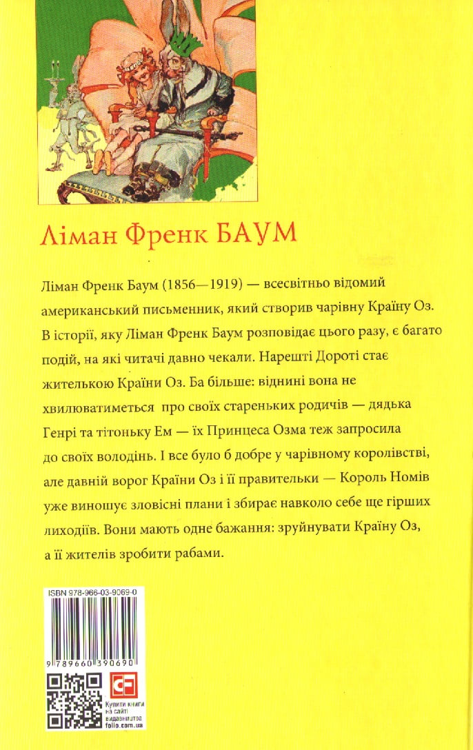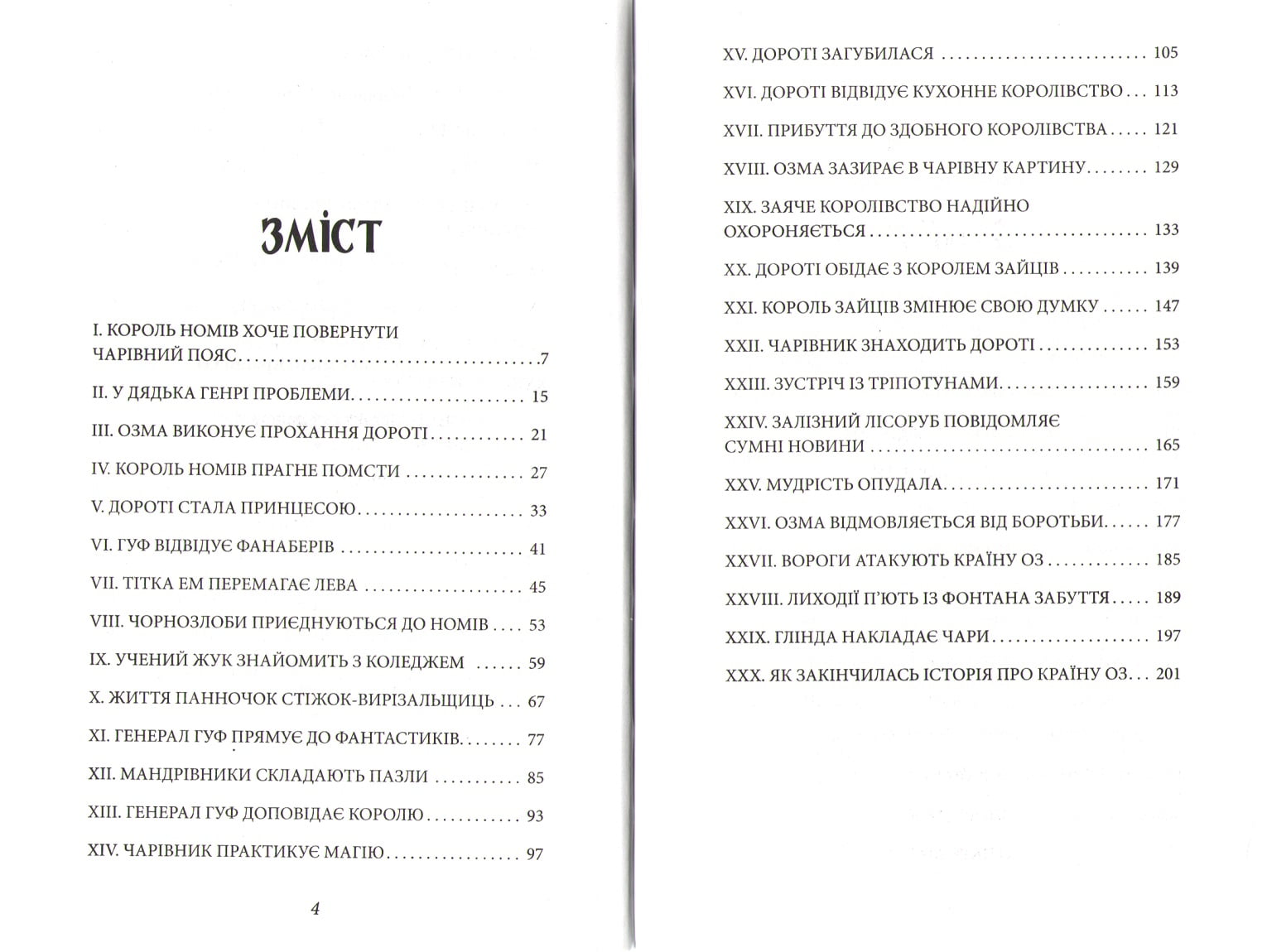 В історії, яку Ліман Френк Баум розповідає цього разу, є багато подій, на які читачі давно чекали. Нарешті Дороті стає жителькою Країни Оз. Ба більше: віднині вона не хвилюватиметься про своїх стареньких родичів — дядька Генрі та тітоньку Ем — їх Принцеса Озма теж запросила до своїх володінь. І все було б добре у чарівному королівстві, але давній ворог Країни Оз і її правительки — Король Номів уже виношує зловісні плани і збирає навколо себе ще гірших лиходіїв. Вони мають одне бажання: зруйнувати Країну Оз, а її жителів зробити рабами.