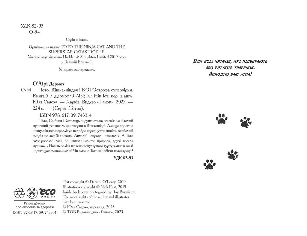 Тото, Срібник і Котолиць вирушають на всесвітньо відомий музичний фестиваль для тварин в Кітстонбері. Але ще дорогою кішку-ніндзю переслідує недобре передчуття: якийсь знайомий сморід не дає їй спокою. Лиходій і справді неподалік! А Тото саме розслабилася, бо навколо намети, природа, друзі, весела музика… Навіть соліст шалено популярного гурту кличе в гості і пригощає смаколиками! Чи зможе Тото запобігти котострофі?