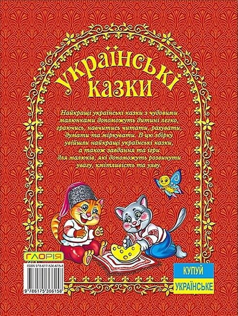 Яскраві казки з чудовими малюнками допоможуть дитині легко, граючись, навчитись читати, рахувати, думати та міркувати. В цю збірку увійшли найкращі українські казки, а також завдання та ігри для малюків, які допоможуть розвинути увагу, кмітливість та уяву.