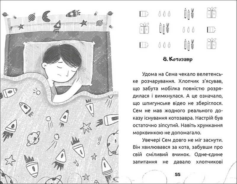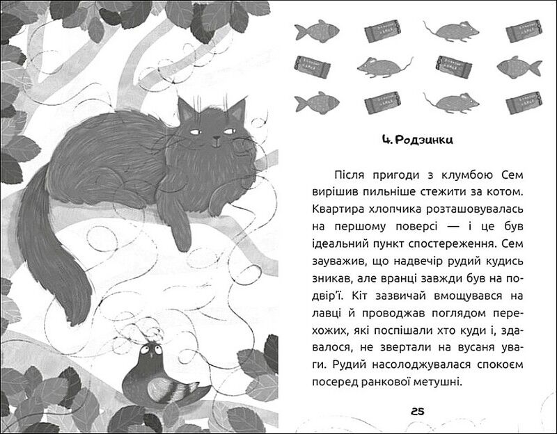 Одного разу другокласник Семен зустрів особливого гостя — рудого кота з довжелезними вусами. І саме з них, із вусів, починаються історії, які змінять життя хлопчика. Кіт дивуватиме Сема своїми секретними вміннями, таємно допомагатиме іншим, а головне — відкриє найбільшу хлопчикову суперсилу. Це казкова повість про дитинство, дружбу й помічників, які трапляються в житті кожного.
