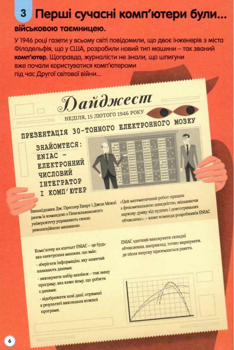 У книжці зібрано 100 захопливих фактів про числа, комп’ютери, програмування та про те, як їх використовують та удосконалюють. Уся інформація супроводжується яскравими ілюстраціями.