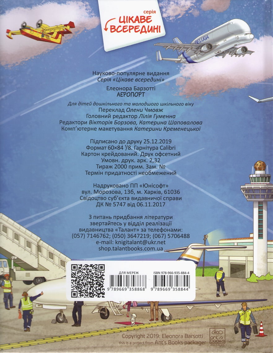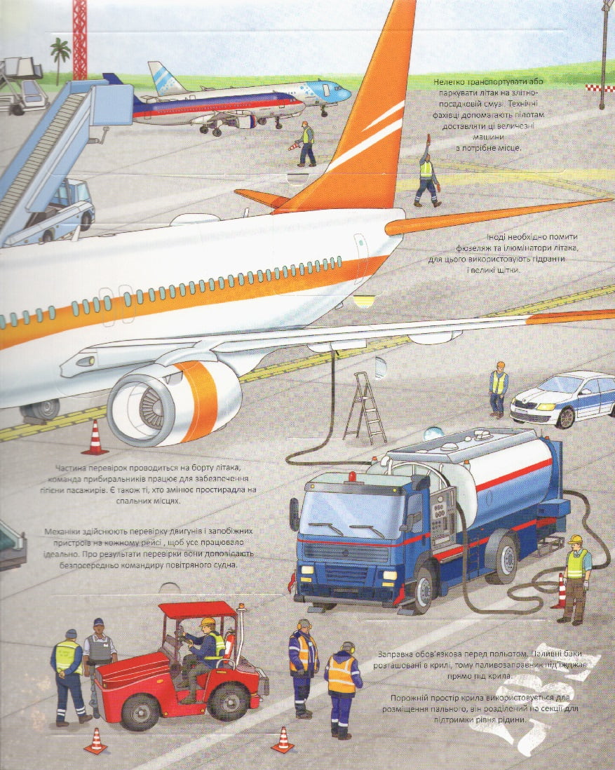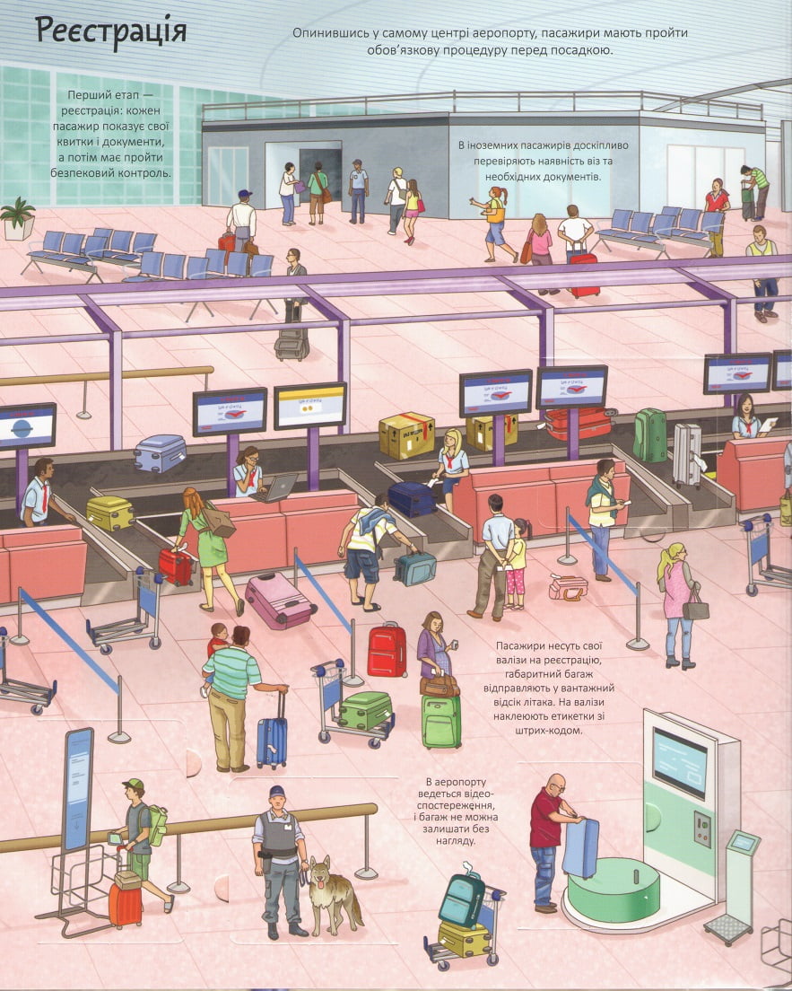 Любителі техніки будуть просто в захваті, бо ж у книжці стільки різноманітних машин, що годі полічити. Про найцікавіші з них, а також про роботу аеропорту юні мандрівники дізнаються зі сторінок нової подарункової енциклопедії «Аеропорт». 70 віконець із «секретами», величезна сторінка-розгортка й чудові ілюстрації роблять книгу напрочуд захопливою та цікавою для дошкільнят і школярів.