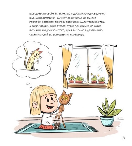 Майже кожній дитині хотілося б мати вдома котика. Пухнастого чотирилапого друга. Але слід пам’ятати, що коти — це живі істоти, які потребують догляду й турботи і, якщо захочуть, можуть наробити чимало шкоди. Ця книжка розповість усе про догляд за котиком, розкаже про переваги й недоліки його життя у вас удома. Але будьте певні: розваги та веселощі з вашими улюбленцями варті того! Якщо хочете дізнатися все про котиків — ця книжка для вас!