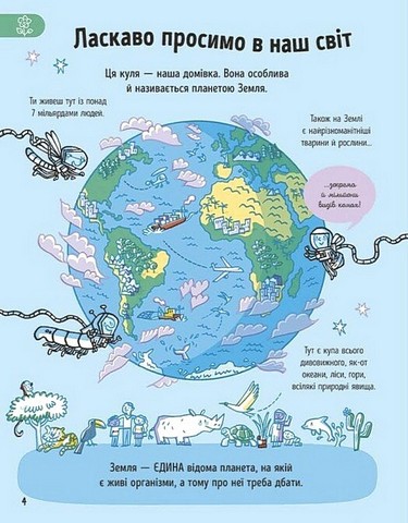 Ваша дитина мріє дізнатися про світ усе? Тоді ця книжка стане її першим компасом! Тут малеча зануриться у Світовий океан і познайомиться з його мешканцями, відвідає всі континенти й пізнає особливості кожного, дізнається про країни та міста, ліси й гори. У книжці знайдеться все, що допоможе дитині осягнути наш світ: від погоди в різних частинах Землі до збереження довкілля.