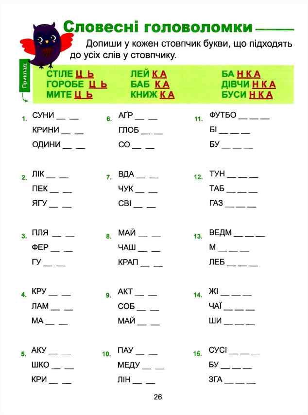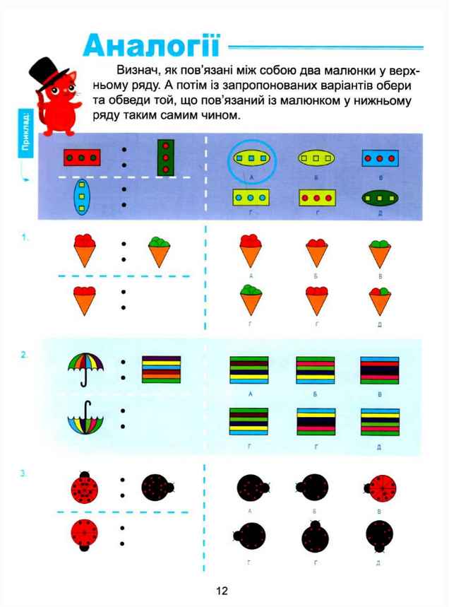 Перед ними є пояснення, після якого наводиться приклад рішення. Логічні завдання допомогають розвинути мислення, увагу, пам`ять, уміння порівнювати.