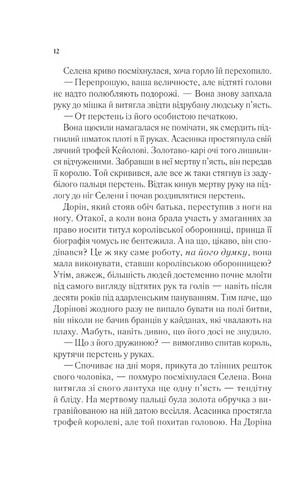 Найбезстрашнішій з усіх асасинок Адарлену лише вісімнадцять. Селена — видатна вбивця, якій вдалося виграти небезпечні змагання та здобути титул королівської оборонниці. Утім, їй обіцяли ще й таку омріяну свободу, а натомість дівчина не здатна навіть дати волю своєму серцю. Більшого тягаря в неї на душі ще не бувало: якщо вона холоднокровно вб’є аж такого ненависного їй ворога — це означатиме смертельний вирок для всього найдорожчого в її житті. Здавалося б, вибір простий, адже вона вбивця. Та чи має серце вбивця? У всякому разі, Селена буде вирішувати, за що битися: за любов, за виживання чи за майбутнє королівства.