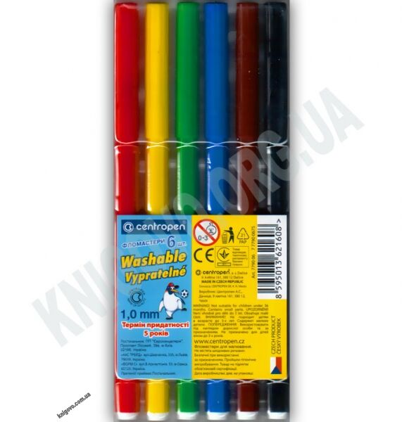 Набор состоит из 6 ярких цветных фломастеров, которые обязательно понравятся юному художнику, ведь они имеют удобную форму для маленьких пальчиков. Фломастеры Centropen безвредны и нетоксичны, легко смываются с рук.