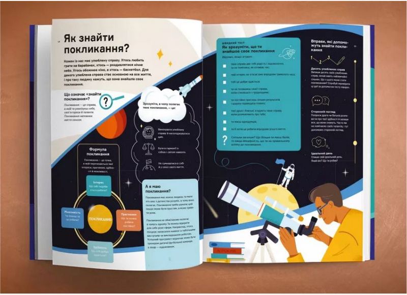 Матеріал, поданий у вигляді барвистих і зрозумілих інфографік, розвине м'які навички, які не формуються у звичайній шкільній системі.