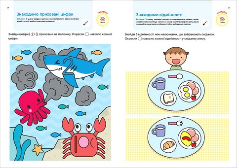 У вправах книжки «Gakken. Розумні ігри. Ранній розвиток. 3–5 років» дитині пропонується: