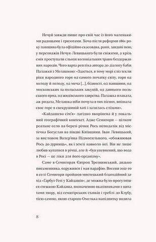Яскраві описи життя, гумор і прекрасно зафіксована розмовна мова. А головне, вічні персонажі, риси яких можна розпізнати навіть у ваших знайомих — брати, що, подорослішавши, не можуть знайти спільну мову й поділити майно, знервована мати, яка все своє життя присвятила догляду за сім’єю, але й контролю над нею, старий Кайдаш, що дедалі більше втрачає сенс життя і заглядає у чарку. Нечуй-Левицький зображає родину зі свіжими ранами, що залишились після скасування панщини, і крізь сміх у цій історії проступають сльози не лише від сімейних образ, а й від глибоких колоніальних травм.