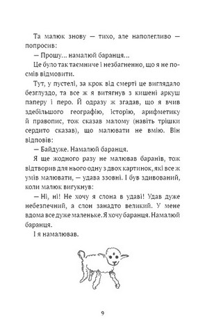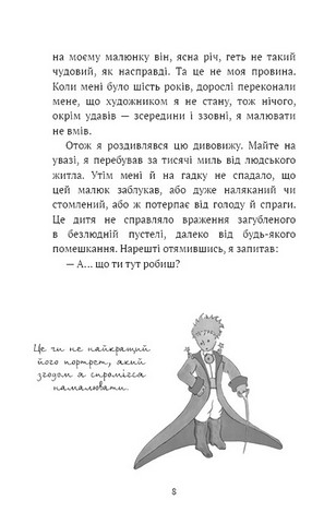 «Маленький принц» Антуана де Сент-Екзюпері — одна з найулюбленіших і найпопулярніших у світі книг. Це зворушлива і мудра історія про маленького хлопчика, що потрапив на Землю з далекої зорі. Ця історія про найважливіші в житті речі: про дружбу і любов, про вірність і обов’язок, про Людину і людяність. По-дитячому наївна і навіть трохи дивна, насправді вона про дуже серйозне і вічне. Книга ілюстрована малюнками самого автора цієї безсмертної казки, що вабить до себе і не лишає байдужим жодне людське серце.