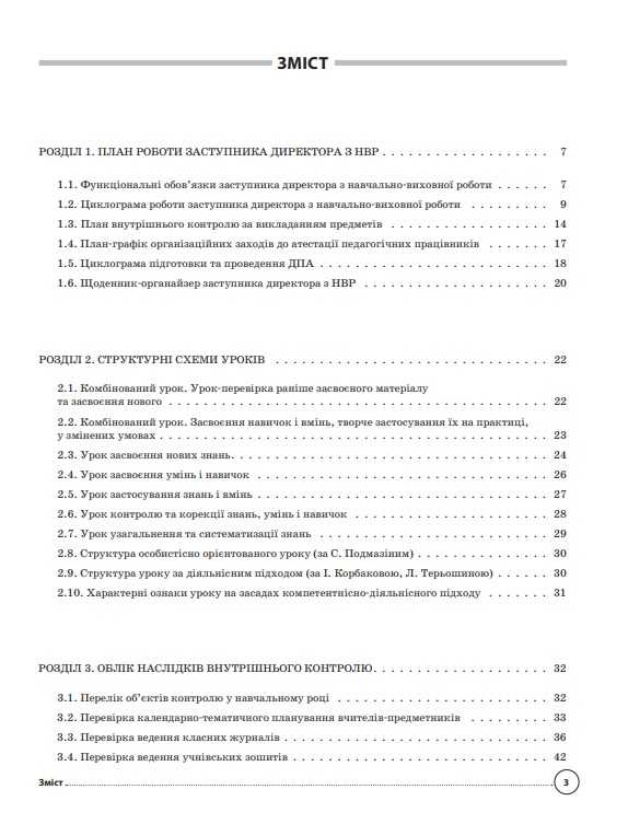 У книзі подано структурні схеми основних типів уроку, схеми аналізу уроку, протоколи й бланки для внутрішнього контролю за педагогічною діяльністю, веденням шкільної документації, виконанням навчальних програм тощо.