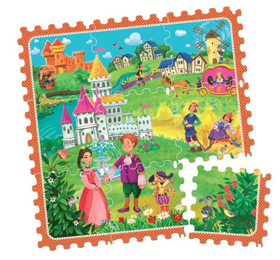 Кіт у чоботях Казка-пазл Дошколярик. Виготовлена з високоякісного картону із дотриманням усіх державних санітарних вимог, має округлі куточки сторінок і є безпечною для дитини. Окрім цього, книжки дуже незвичайної форми: вони складаються з 10 аркушів-пазлів, на одному боці яких текст казки поєднаний із зображеннями, а на іншому лише малюнки казкової історії та героїв.