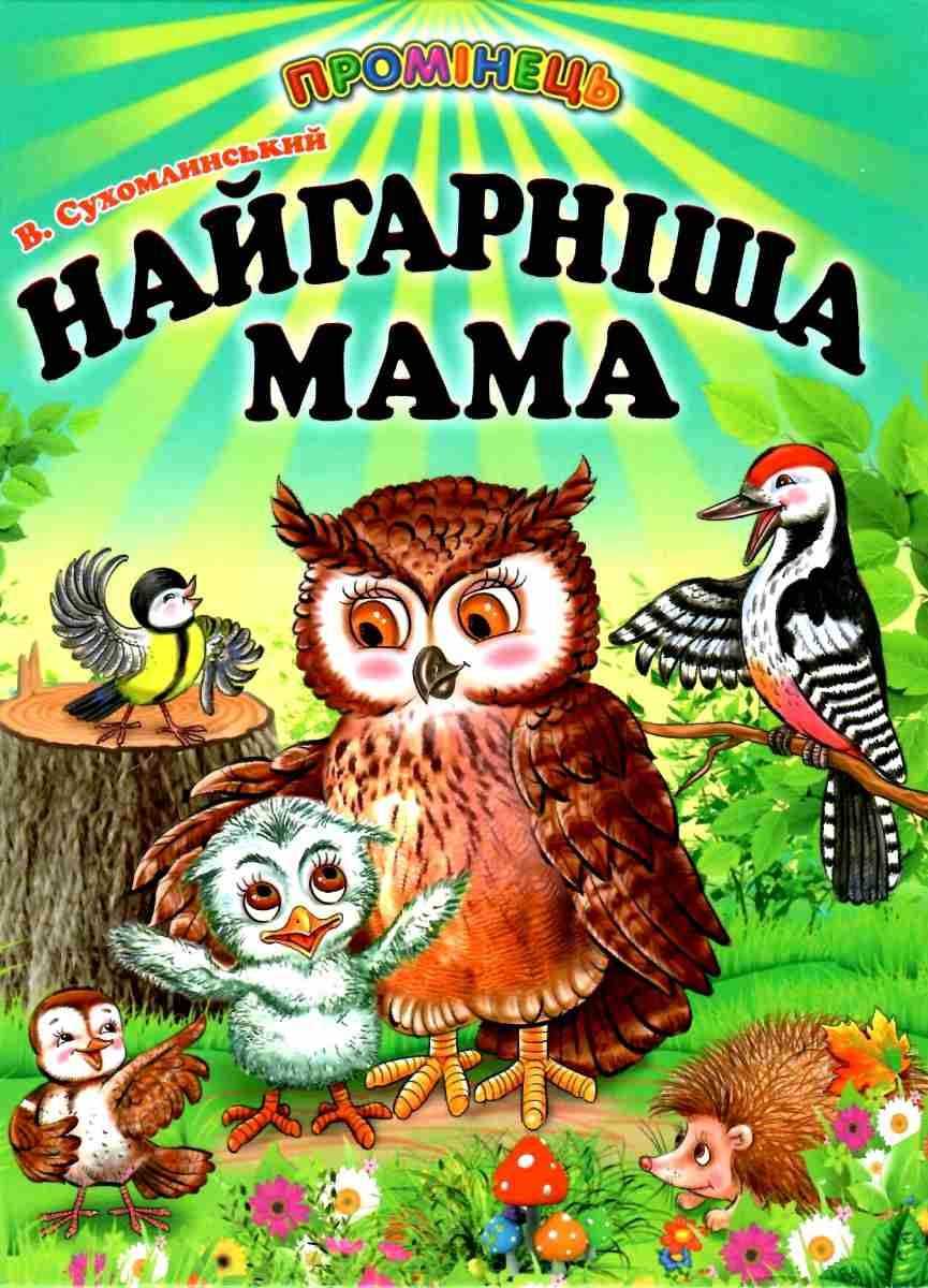 Промінець Найгарніша мама Сухомлинський В. Белкар-книга. До збірки ввійшли кращі казки про тварин відомого українського педагога і письменника Василя Олександровича Сухомлинського. Вони вчать маленьких читачів любити батьківщину, її природу, поважати старших і допомагати меншим, бути добрими, кмітливими, працьовитими. Ця збірка казок — для наймолодших читачів, які роблять перші кроки в читанні.