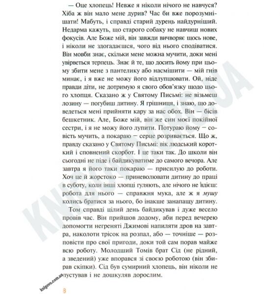 Пригоди Тома Сойєра - один із найяскравіших творів для дітей за всю історію дитячої літератури. З неперевершеною майстерністю автор змальовує світ захоплень хлопчика-непосиди, бешкетного, невгамовного, але щирого і по-справжньому доброго.