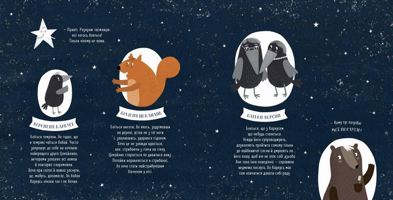 Гарно проілюстрована історія не лише розвеселить і надихне на створення нових слів і метафор, але й дасть усій сім’ї нагоду поговорити про страхи — адже навіть і найхоробріші мешканці гаю чогось таки бояться.