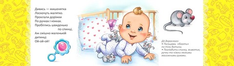Добірка забавлянок надзвичайно сподобається маленьким читачам. Віршики доповнені корисними вправами-руханками, щоб розвивати дитинку й дарувати якомога більше усмішок, любові та ніжності.