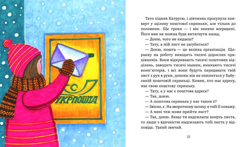 Казка, що зігріває читачів серед зими, зацікавлює дитину листуванням, бо написання листів та очікування відповіді на них створюють невидимий, але міцний зв’язок між людьми.