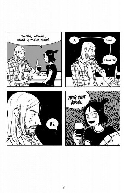 Комікс «Ікла» це останній твір Сари Андерсен, популярної американської авторки, яка закохала весь світ у свої гумористичні комікси «Сарини Каракулі». Це графічний роман який розповідає про романтичні стосунки двох незвичних коханців – білявого хлопця-перевертня та тендітної вампірки.