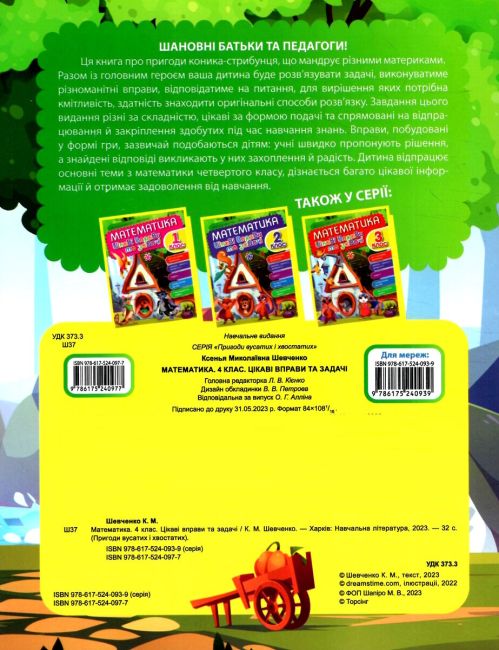 Математика Цікаві вправи та задачі Пригоди вусатих і хвостатих 4 клас НУШ Авт: Шевченко К.М. Вид-во: Торсінг 90859