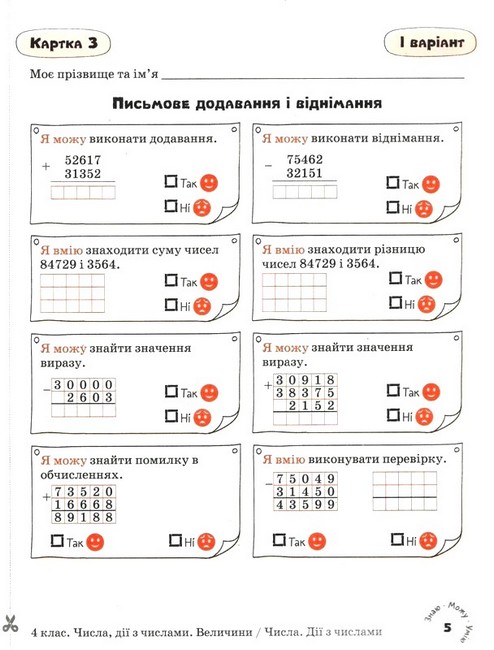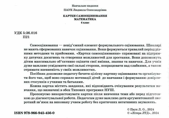 Картки самооцінювання Математика 4 клас НУШ Авт: Л. Паук Вид-во: Літера 101929